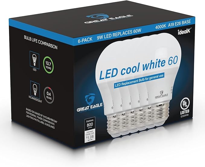 9W (60W Equivalent), UL Listed, 4000K (Cool White), 800 Lumens, Non-dimmable