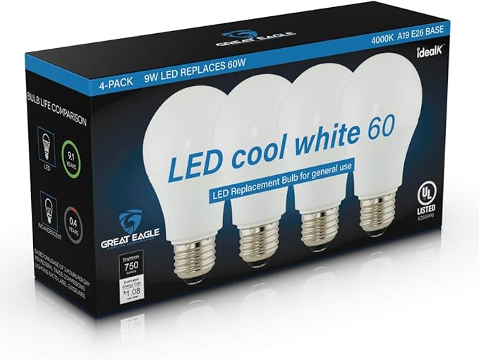 Great Eagle- 9W 4000K Cool White LED Light Bulb